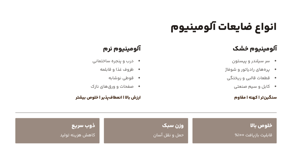 ۶. چه نوع ضایعات آلومینیومی خریداری میشود؟