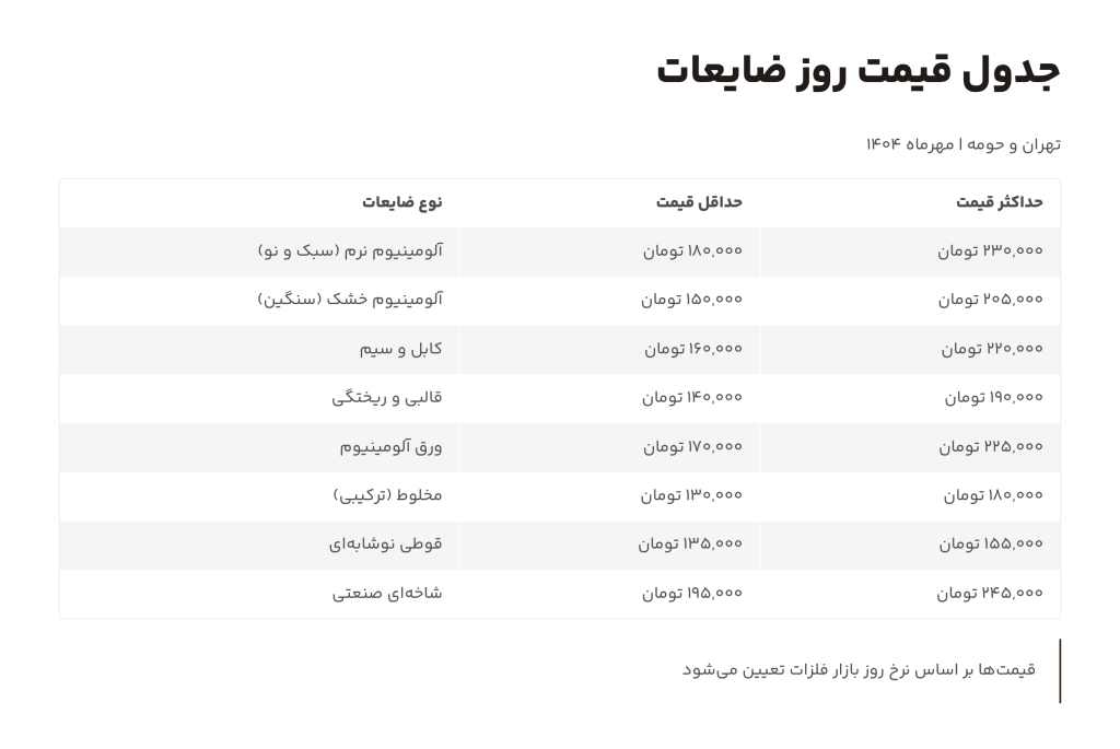 لیست قیمت ضایعات آلومینیوم در تهران ۱۴۰۴